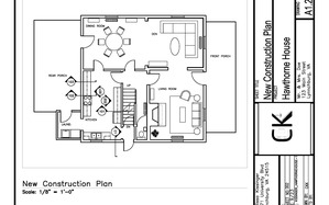 Taking the demolition plan created previously and creating the new walls and kitchen layout with proper layers and line weights in AutoCad. Though not typically included on a new construction plan, furniture plans and layout were created mainly through line with some included through importing blocks.